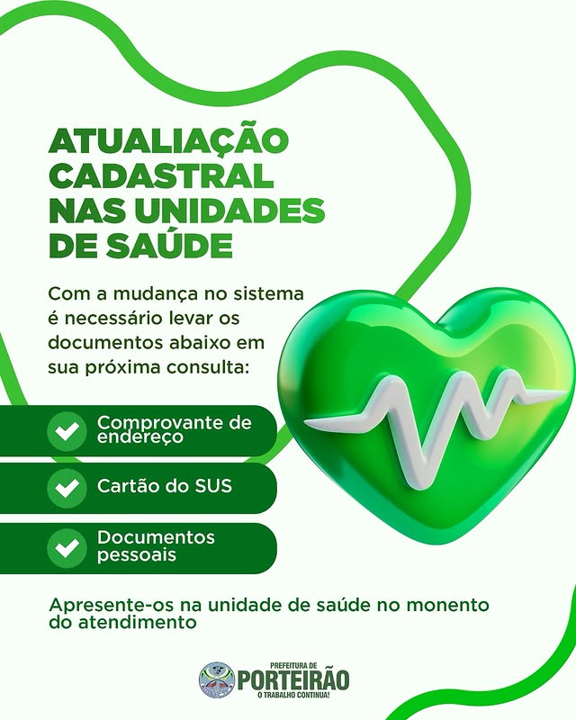 Devido à mudança no sistema, é necessário realizar a atualização cadastral nas unidades de saúde. Na sua próxima consulta, leve: